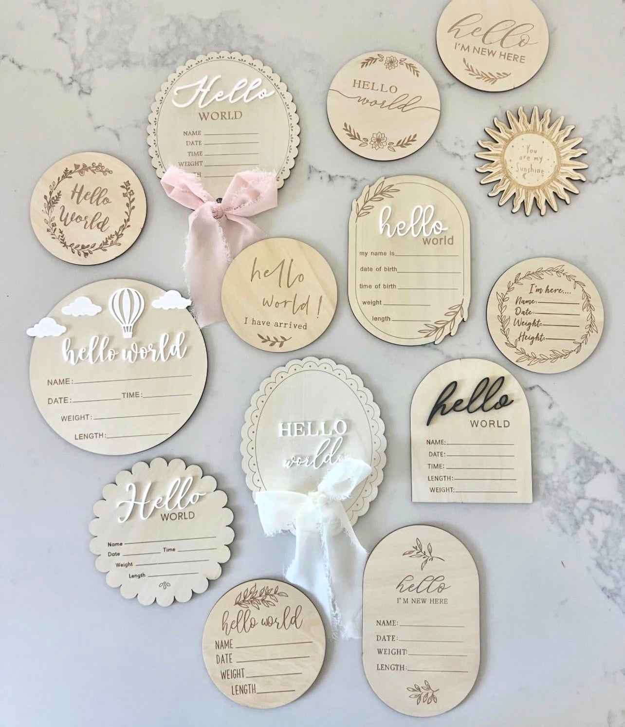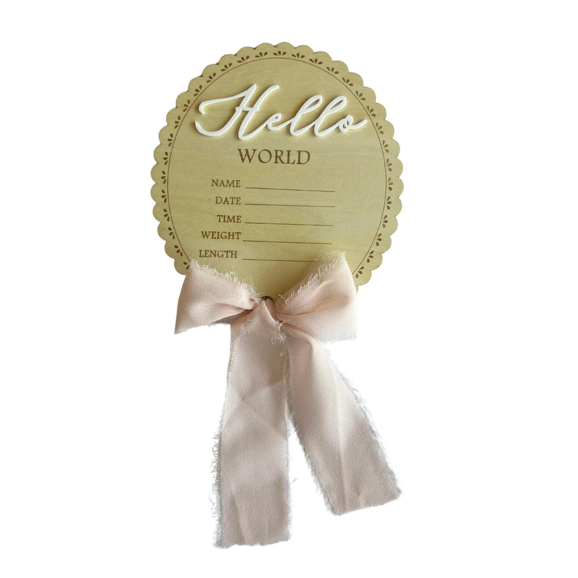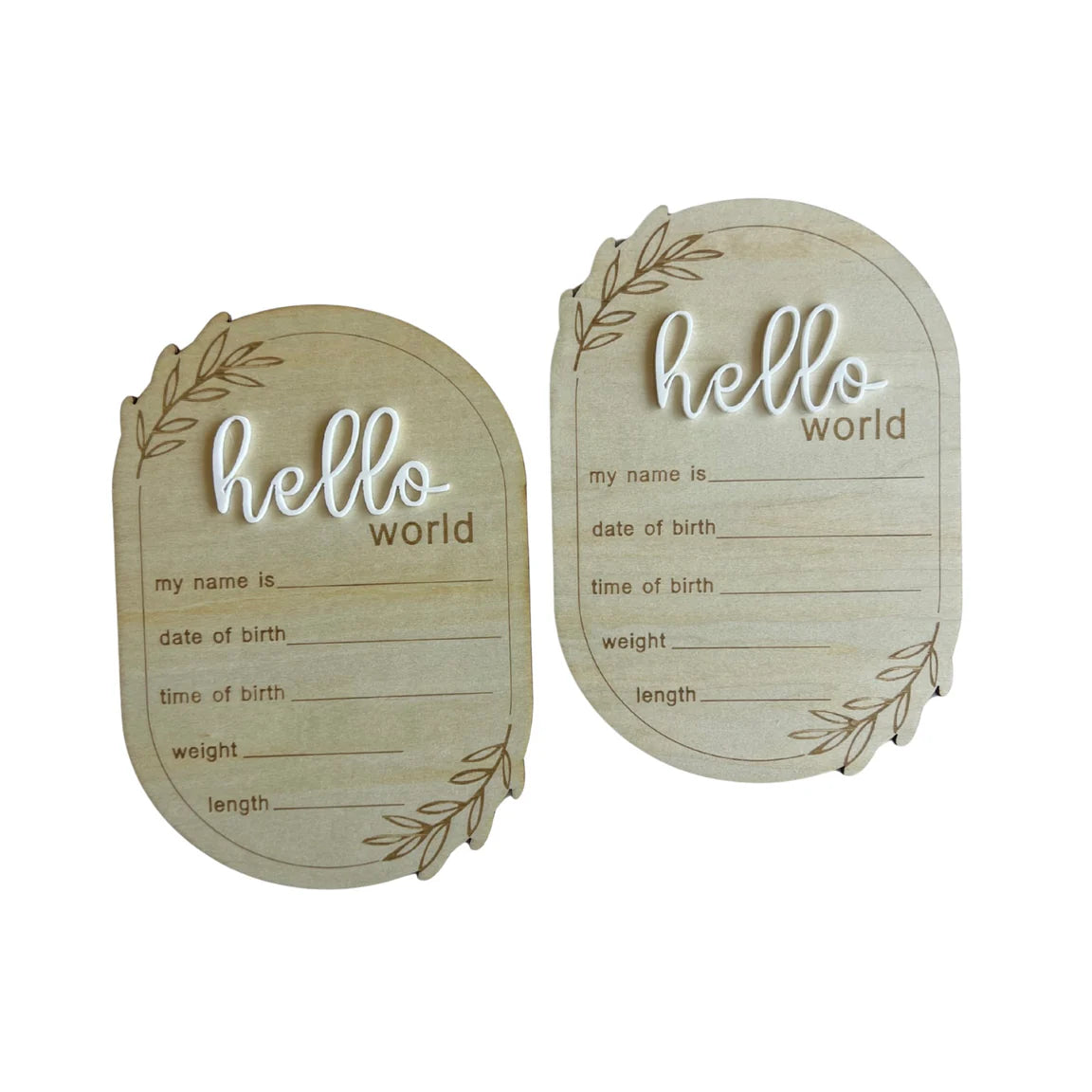 A modern wooden birth announcement plaque, featuring space to record baby’s name and birth details. Perfect for newborn photos, hospital moments and nursery styling—this timeless keepsake celebrates your little one’s first hello.