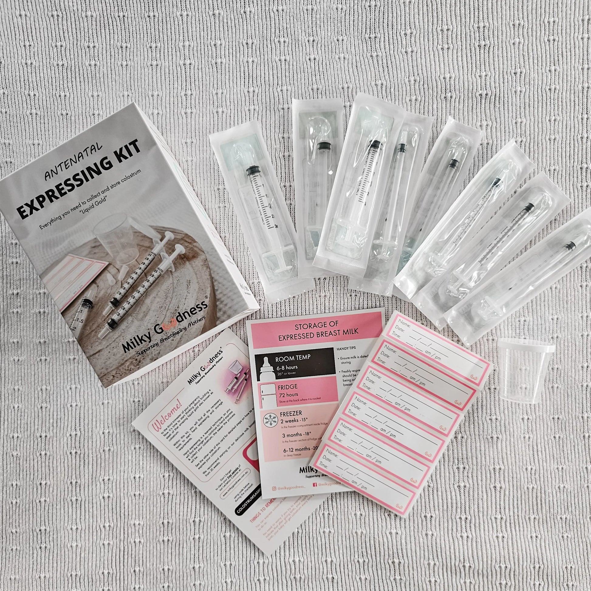 The Milky Goodness® Antenatal Colostrum Expressing Kit is a comprehensive yet convenient kit designed to help you prepare & store your expressed colostrum.