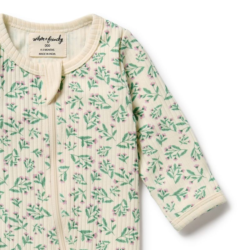 Keep your newborn comfy and cosy in this practical yet adorable footed zipsuit from Wilson and Frenchy. Made from GOTS-certified organic drop needle cotton, it’s soft, breathable, and gentle on delicate skin. Featuring a pretty periwinkle print all over, this zipsuit is designed with fold-over mittens (in sizes newborn to 000) to help prevent scratches, and a two-way zip for quick and easy nappy changes. With the option of a footed design, it’s perfect for keeping little ones snug as they grow. Key Features: Round neckline with concealed zipper for safety. Long sleeved with fold over mittens (newborn to 000). Option for footed or footless wear.